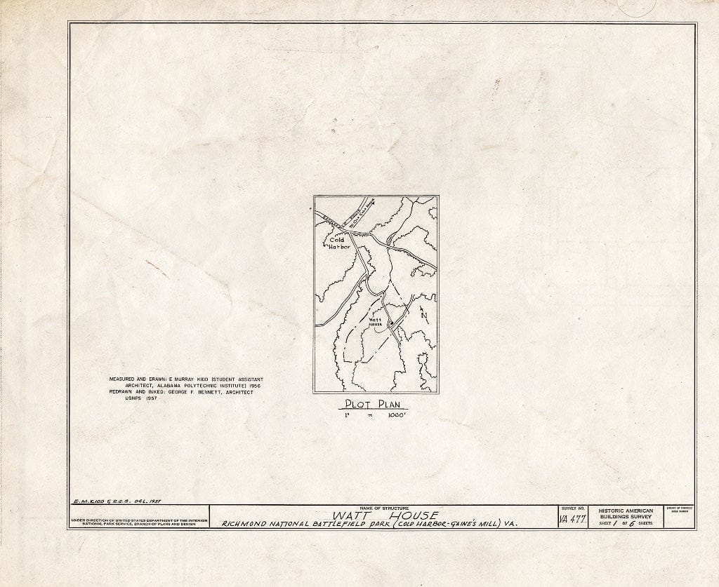 Blueprint HABS VA,43-Cold,2- (Sheet 1 of 6) - Hugh Watt House, Old Cold Harbor, Hanover County, VA