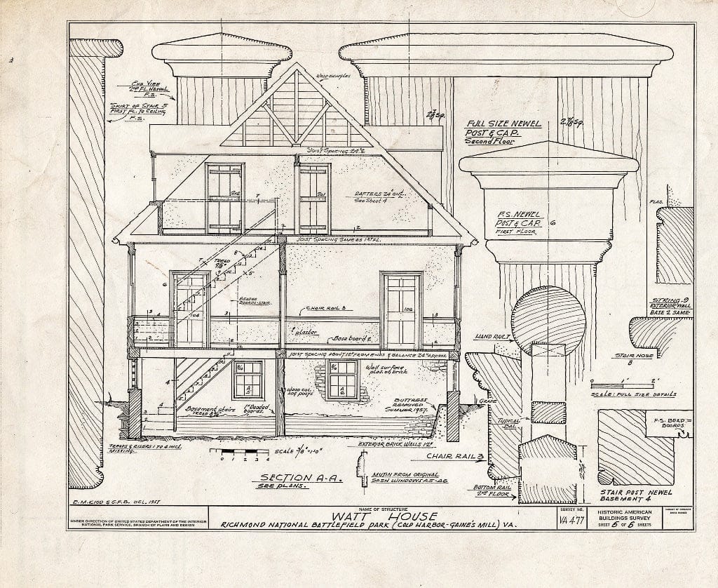 Blueprint HABS VA,43-Cold,2- (Sheet 6 of 6) - Hugh Watt House, Old Cold Harbor, Hanover County, VA