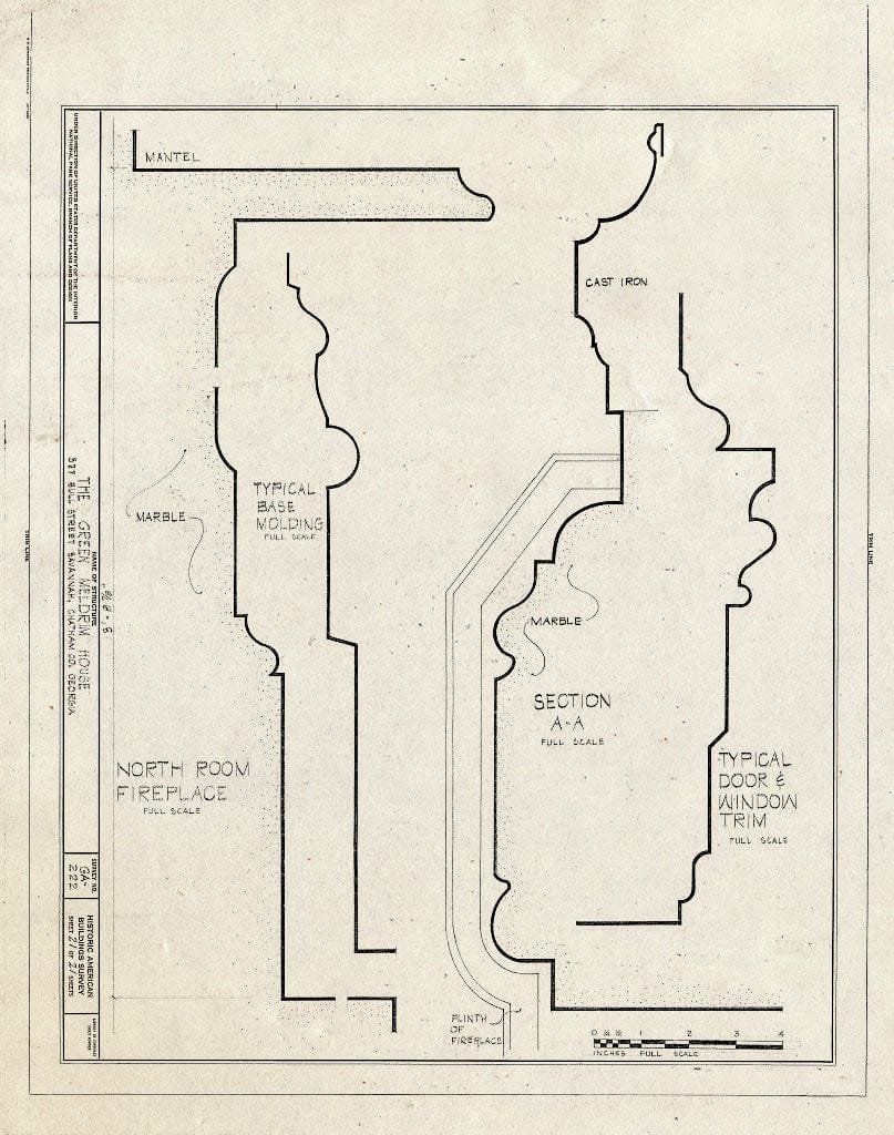 Blueprint 21. North Fireplace Room Details - Green-Meldrim House, 327 Bull Street, Savannah, Chatham County, GA