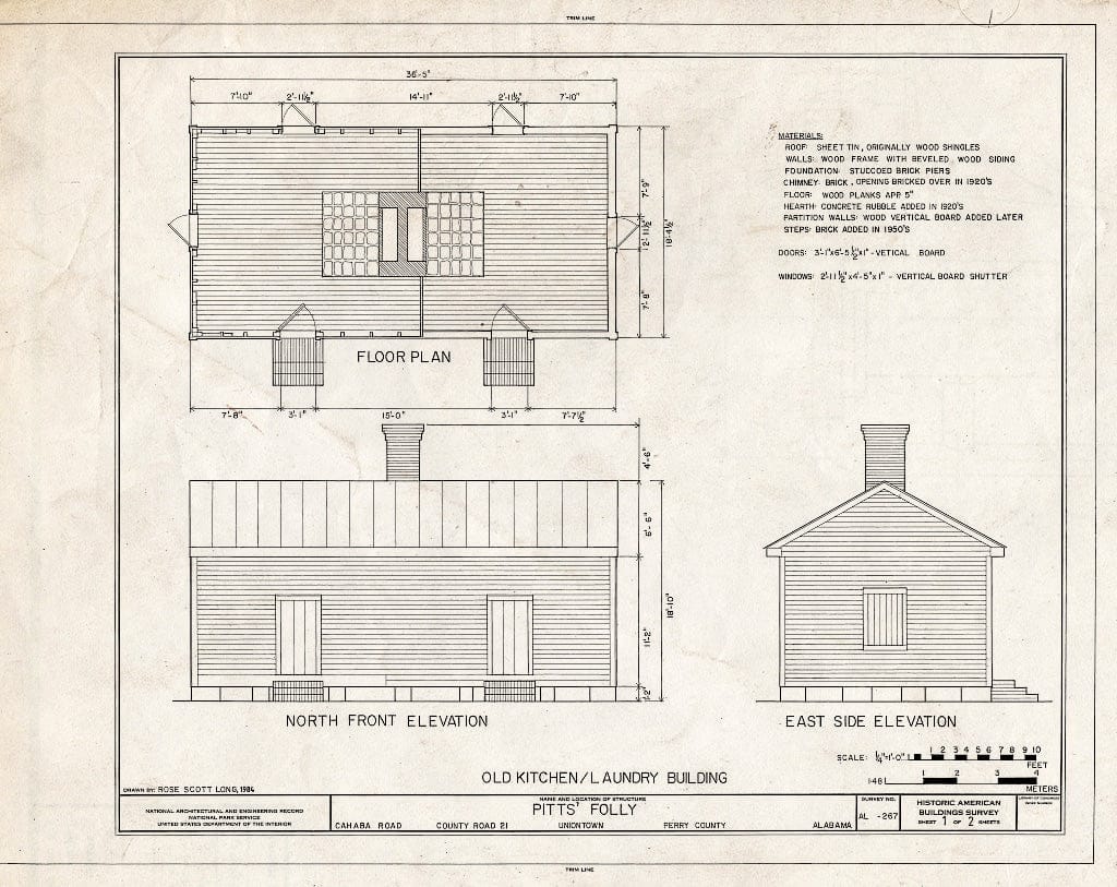 Blueprint Old Kitchen/Laundry Building - Pitts' Folly, House & Outbuildings, State Highway 21, Uniontown, Perry County, AL