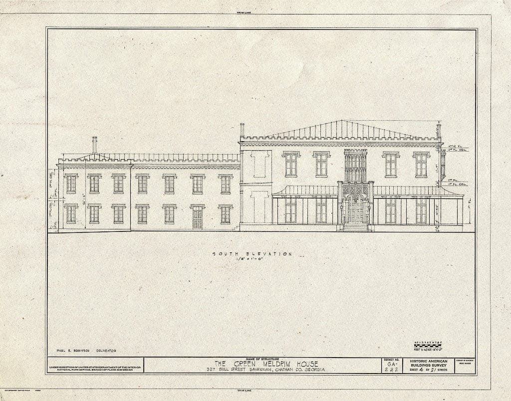 Blueprint 4. South Elevation - Green-Meldrim House, 327 Bull Street, Savannah, Chatham County, GA