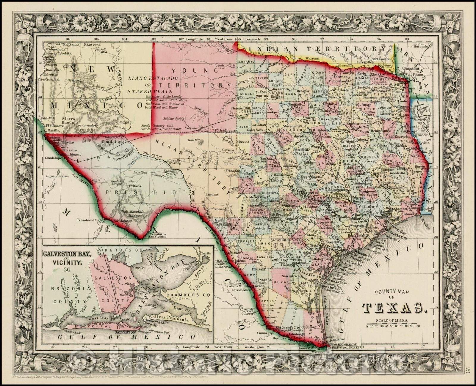 Historic Map - County Map of Texas, 1863, Samuel Augustus Mitchell Jr. v2