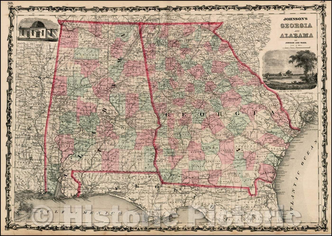 Historic Map - Johnson's Georgia and Alabama, 1862, Benjamin Ward - Vintage Wall Art
