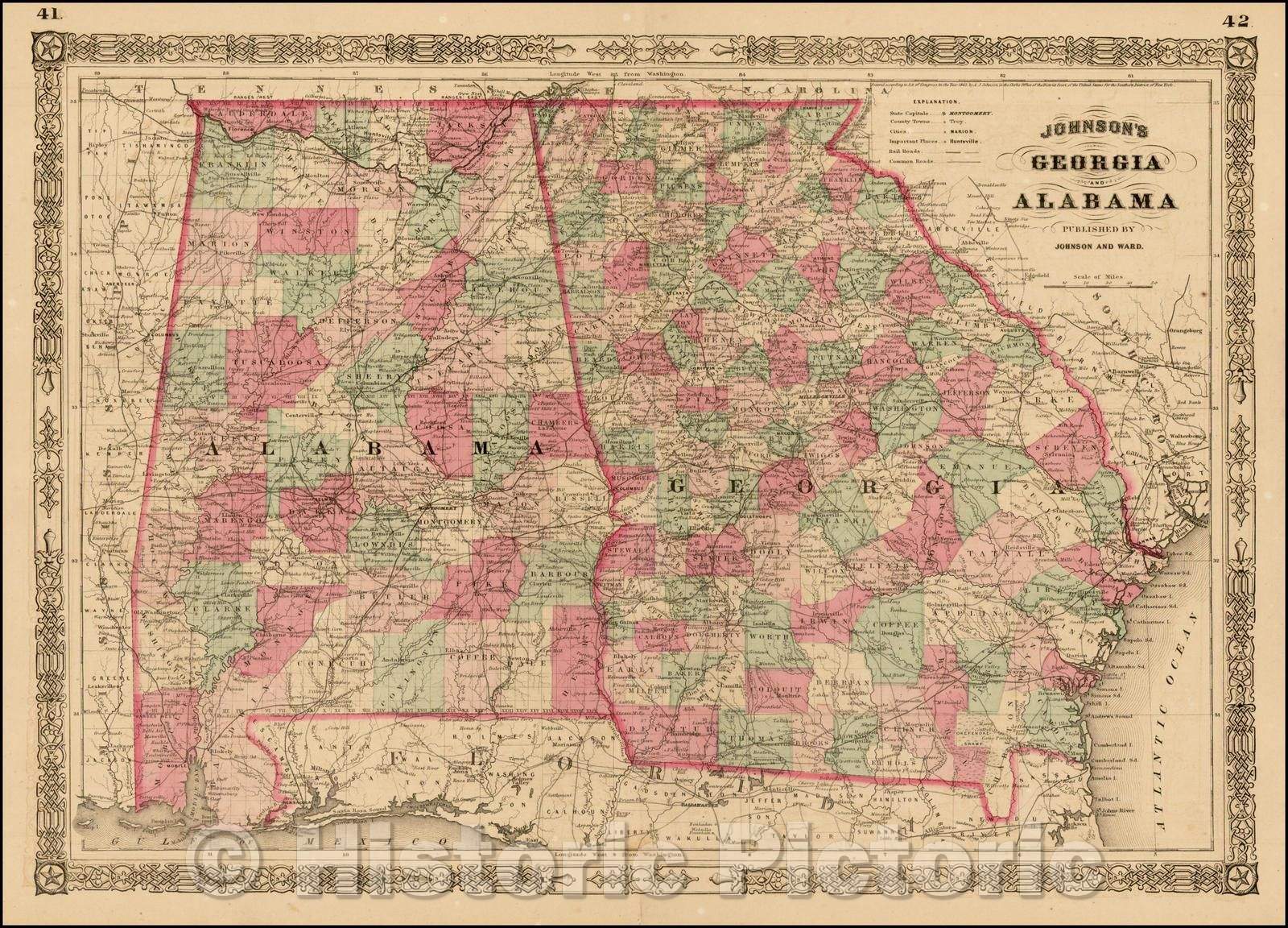• .Historic Map - Johnson's Georgia and Alabama, 1863, Benjamin Ward v1