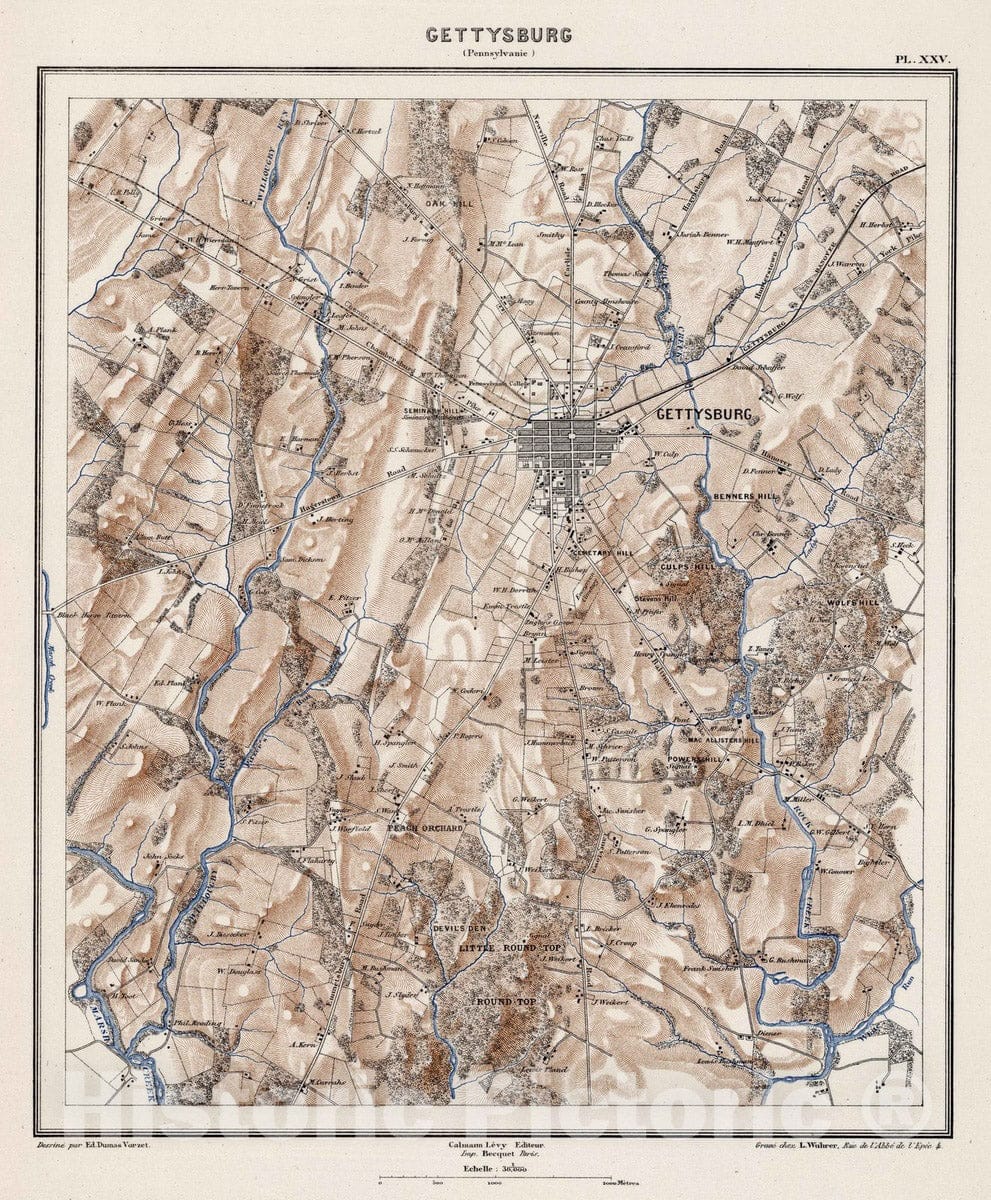 Historic Map : Military Atlas - 1875 Planche XXV. Gettysburg (Pennsylvania). - Vintage Wall Art