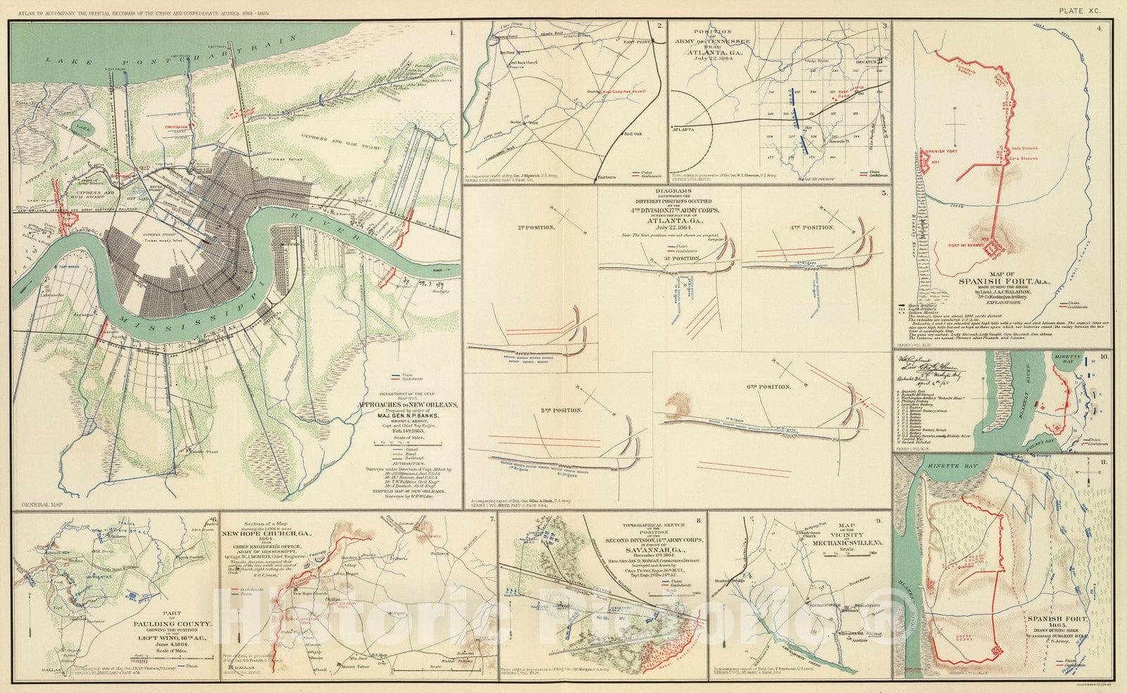 Historic Map : Military Atlas - 1895 Approaches to New Orleans. - Vintage Wall Art