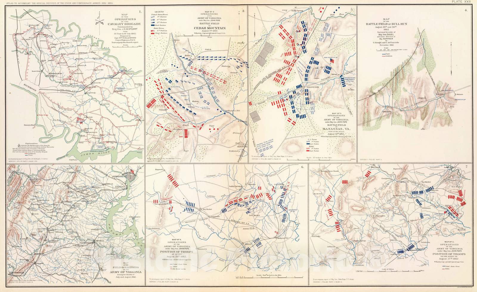 Historic Map : Military Atlas - 1895 Cav. Brigade, Cedar MTN, Manassas, Bull Run, Army of Va. - Vintage Wall Art