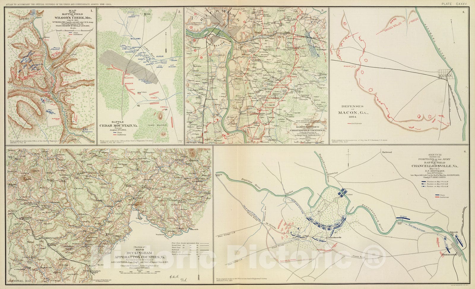 Military Atlas - 1895 Chancellorsville; Buckingham, Appomattox counties.