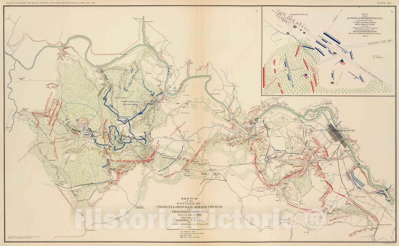 Historic Map : Military Atlas - 1895 Chancellorsville, Salem Church, Fredericksburg. - Vintage Wall Art