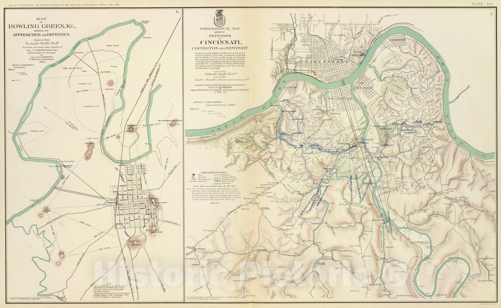 Historic Map : Military Atlas - 1895 Cincinnati, Covington, Newport. - Vintage Wall Art