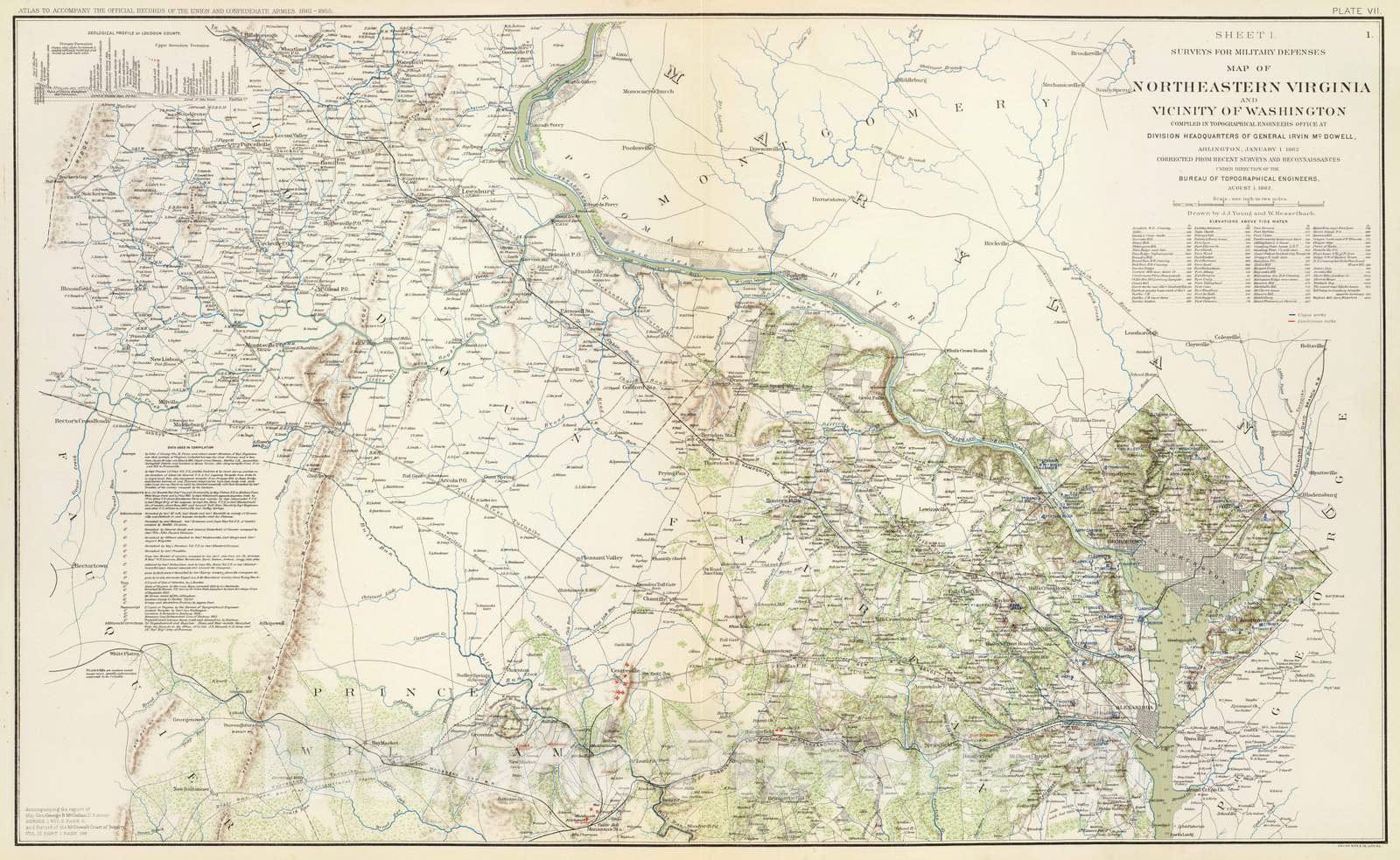 Historic Map : Military Atlas - 1895 N.E. Virginia, Washington 1. - Vintage Wall Art