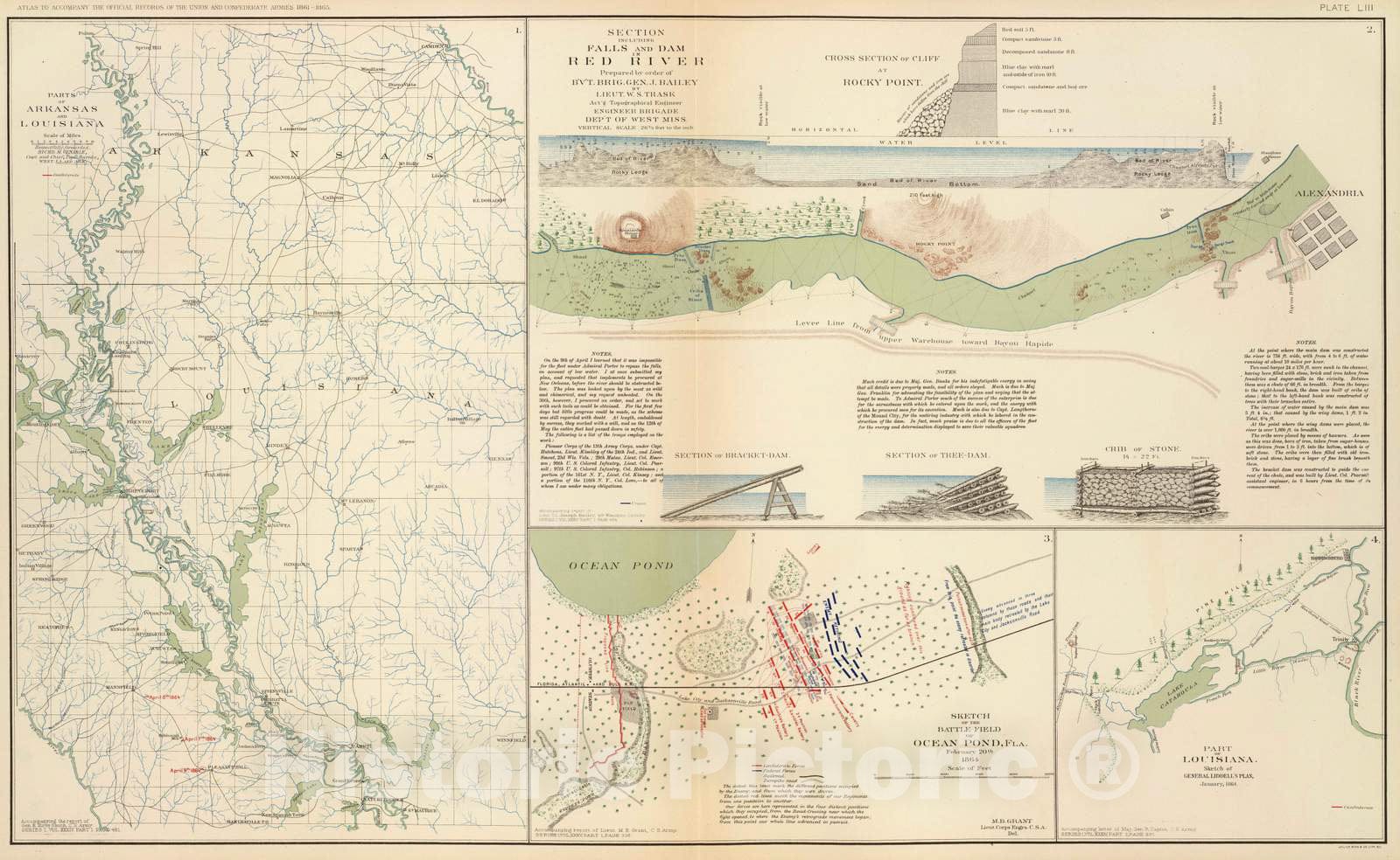 Historic Map : Military Atlas - 1895 Parts Arkansas, Louisiana. - Vintage Wall Art
