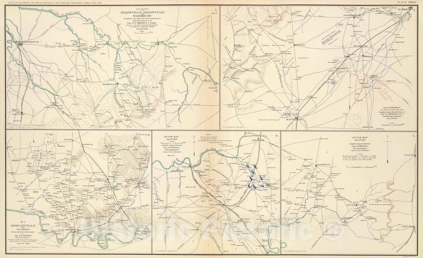 Military Atlas - 1895 Readyville, Bradyville, Woodbury.