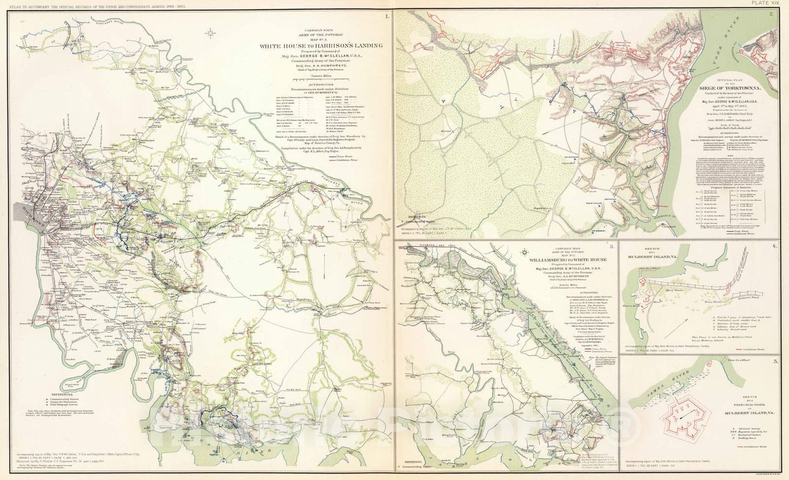 Historic Map : Military Atlas - 1895 White House-Harrison's Landing. - Vintage Wall Art