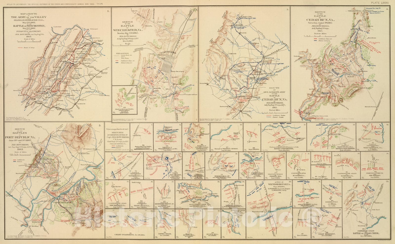 • .Historic Map : Military Atlas - 1895 Winchester, Cedar Run, Port Republic, Va. - Vintage Wall Art