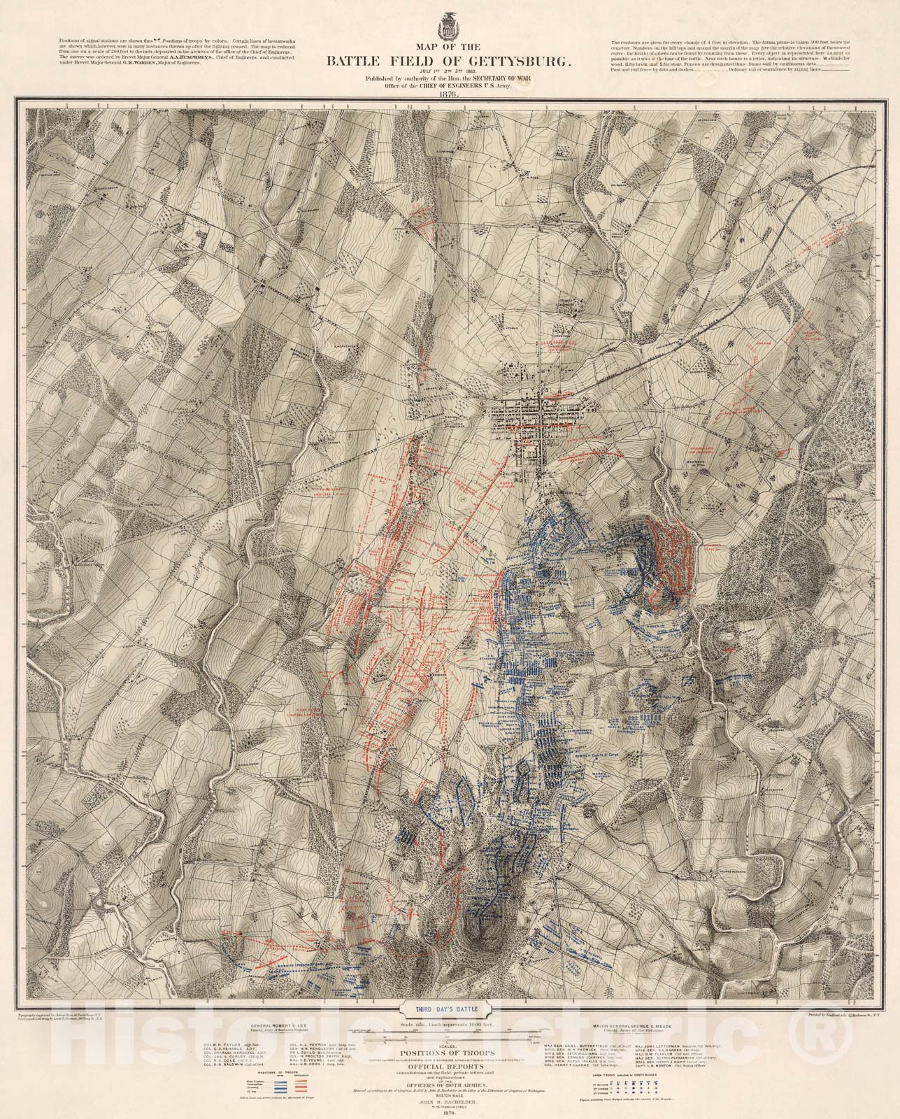 • .Historic Map : Third days battle. Gettysburg, July 3rd, 1963., 1876, Vintage Wall Art