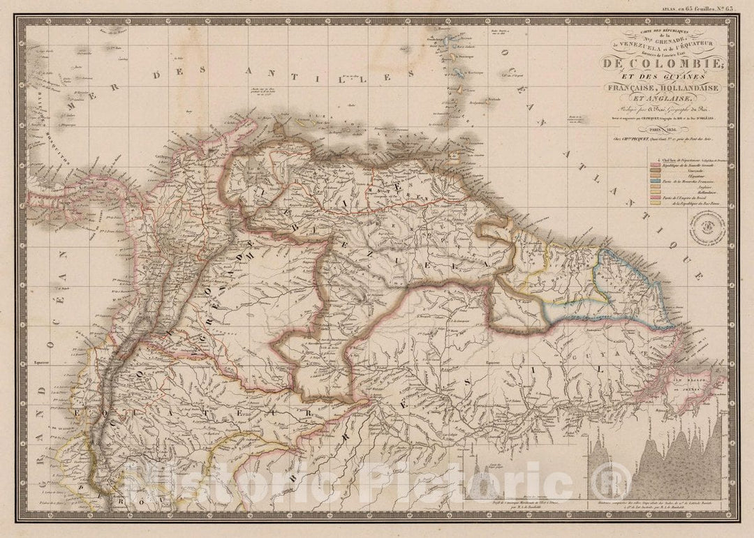 Historic Map : Colombia, Carte de Colombie et des Guyanes, 1836 Atlas , Vintage Wall Art