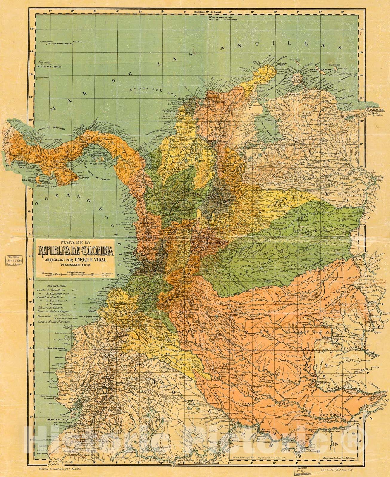Historic 1912 Map - Mapa de la Republica de Colombia