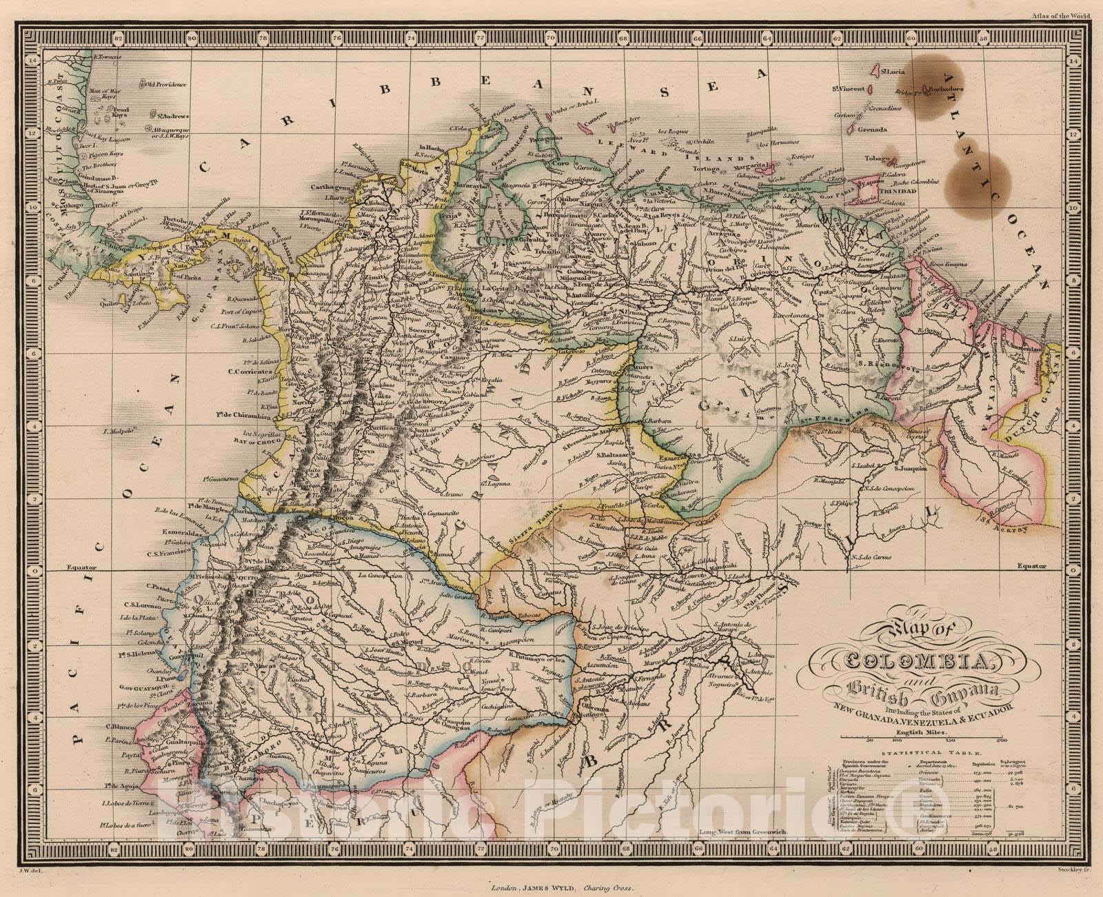 Historic Map : 1864 Colombia, British Guyana, Including the States of New Granada, Venezuela & Ecuador - Vintage Wall Art
