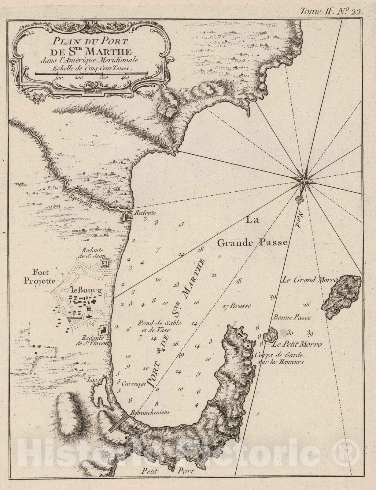 • Historic Map : Colombia, 1764 Plan Du Port De S[ain]te Marthe : dans l'Amerique Meridionale , Vintage Wall Art