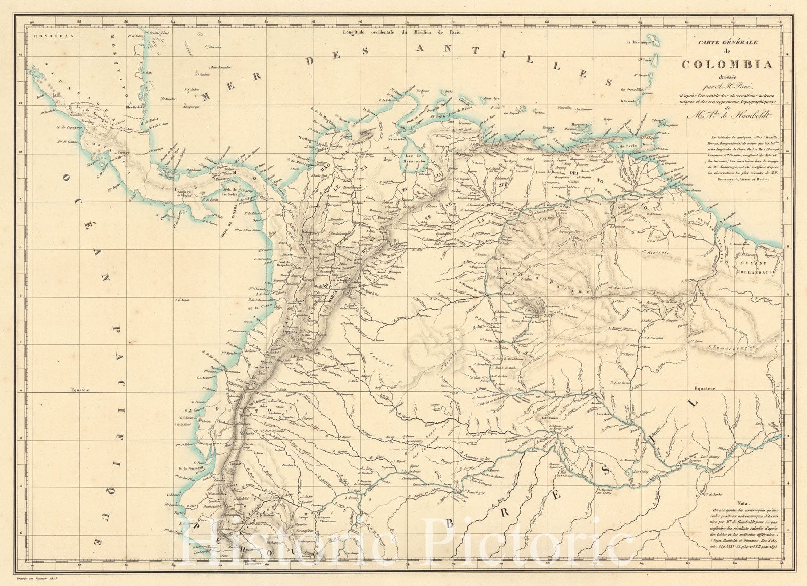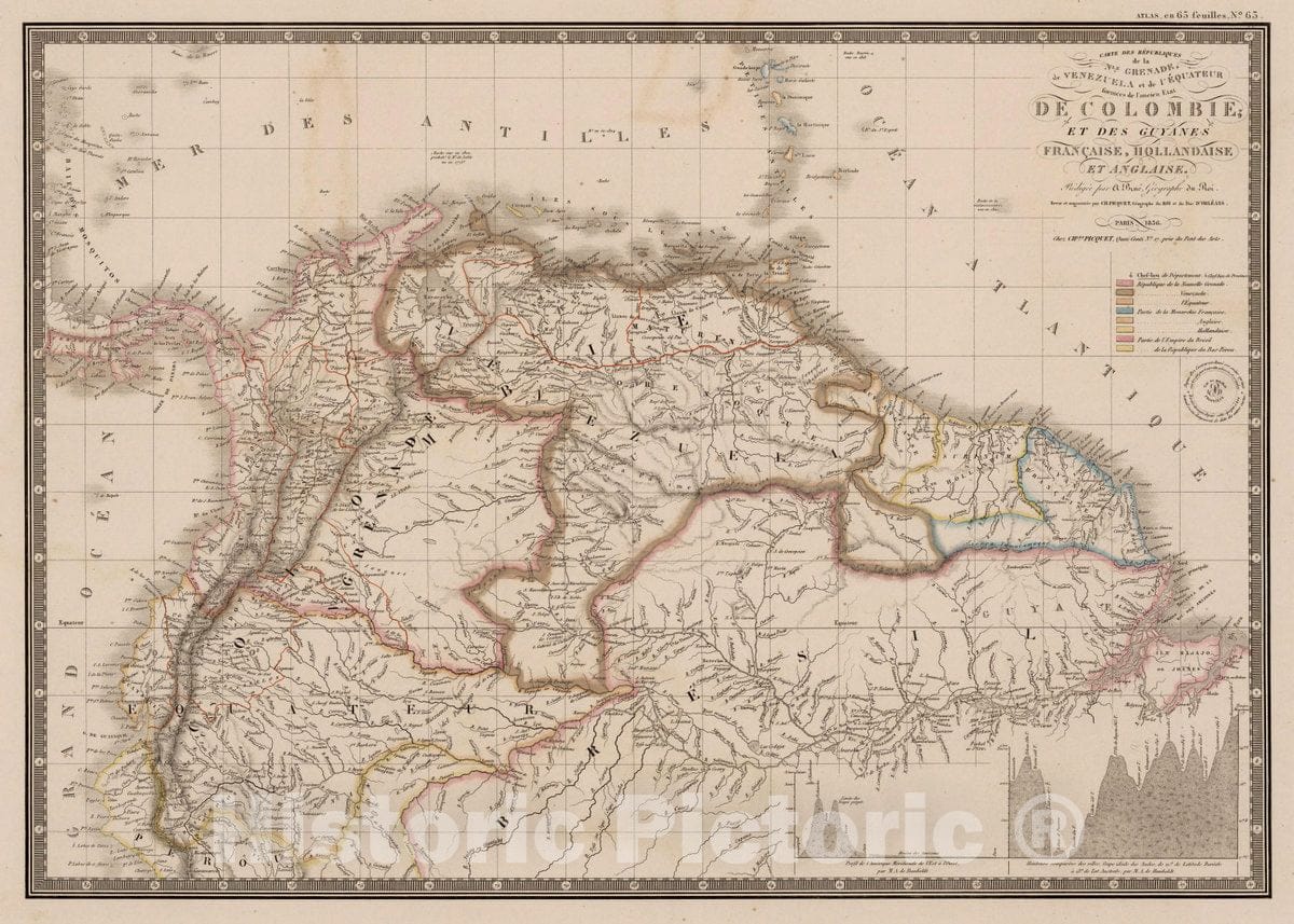 Colombia, Carte de Colombie et des Guyanes, 1836 Atlas , Vintage Wall Art