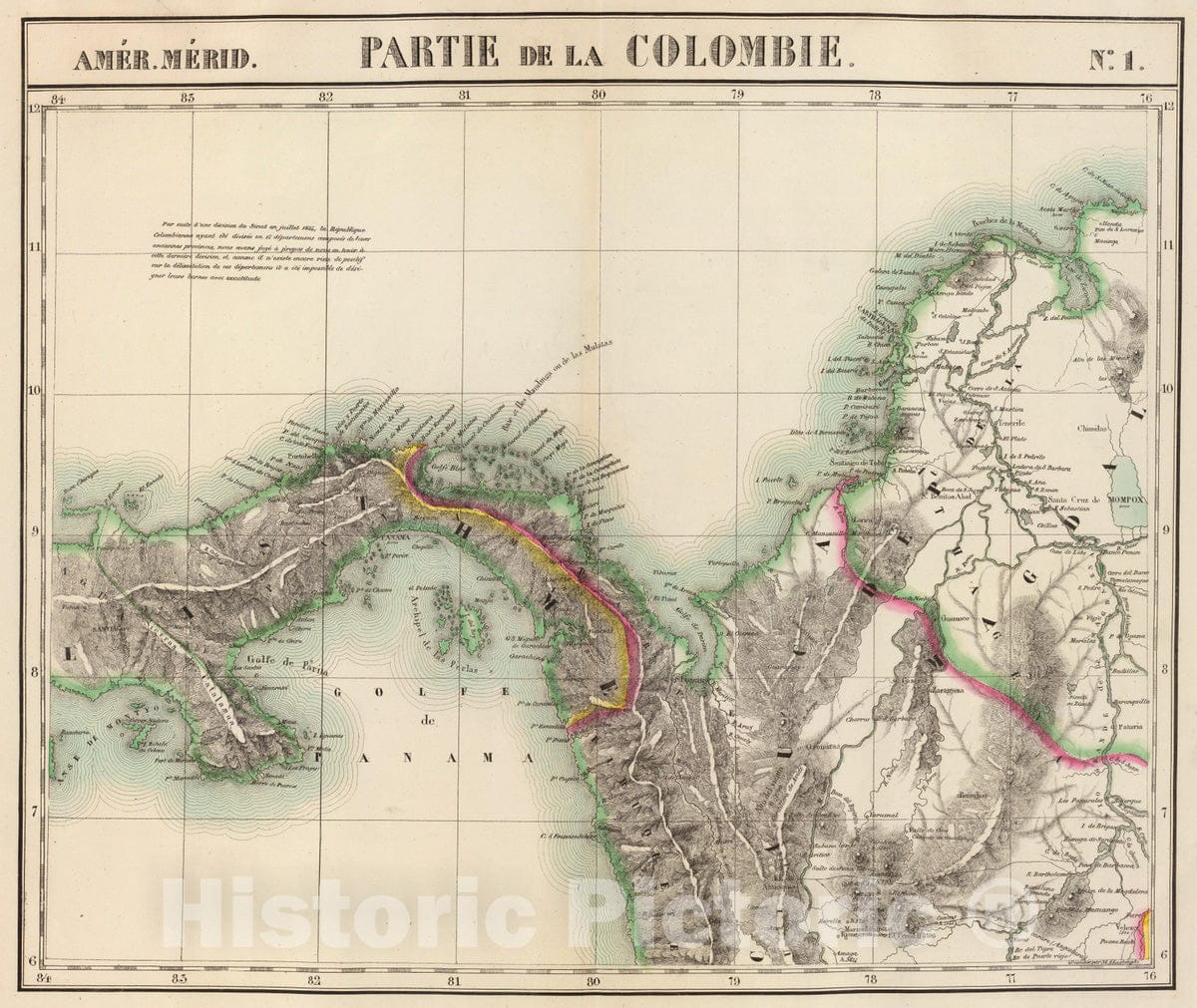 • .Historic Map : Colombia; Panama, 1827 Partie, Colombie. Amer. Merid. 1. , Vintage Wall Art