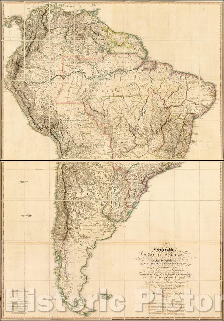Historic Map - Colombia Prima or South America, in which has been Attempted to Delineate the Extent of our Knowledge, 1807, William Faden - Vintage Wall Art