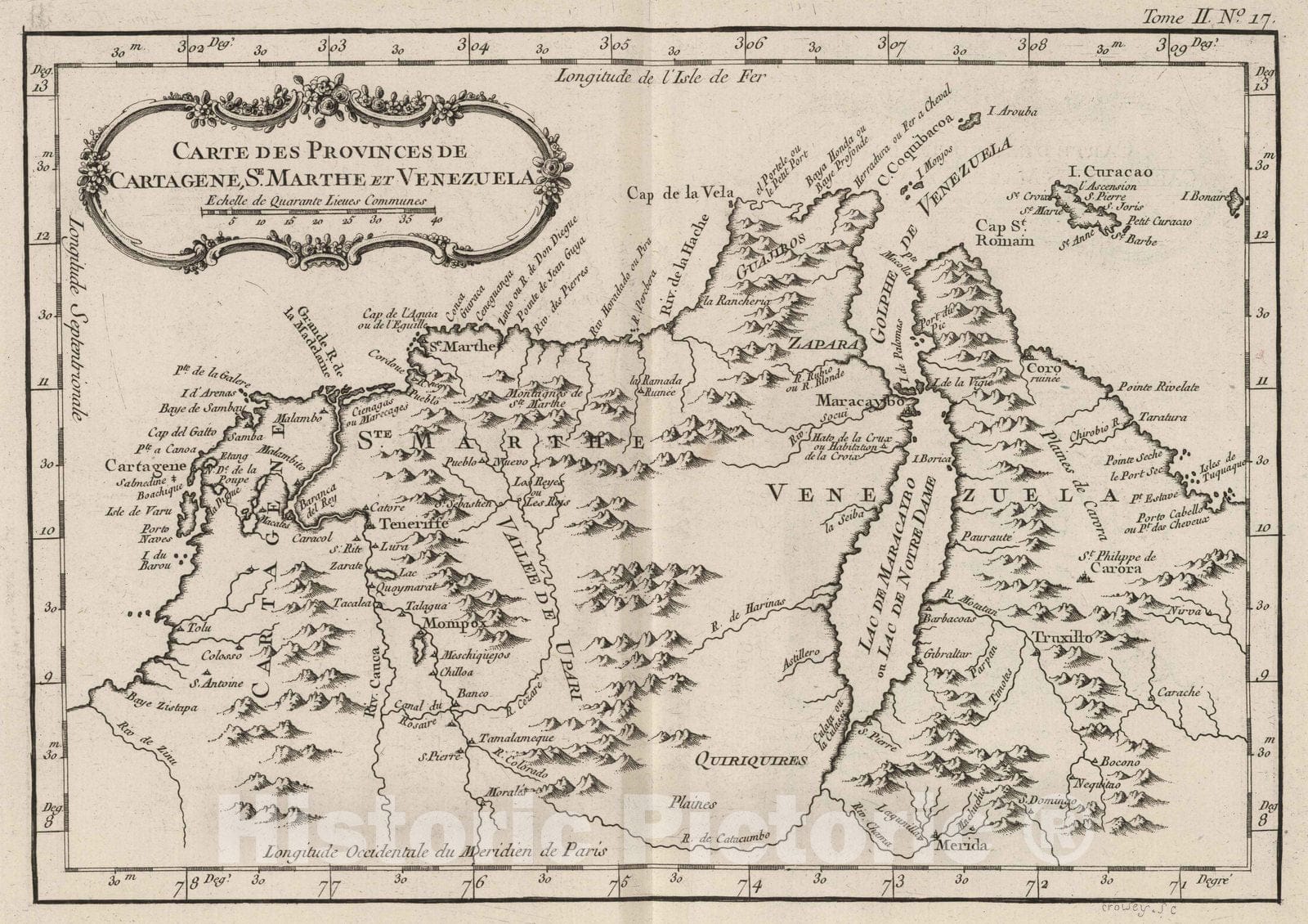 Historic Map : Colombia; Venezuela, 1764 Carte des provinces de Cartagene, S.e Marthe et Venezuela , Vintage Wall Art