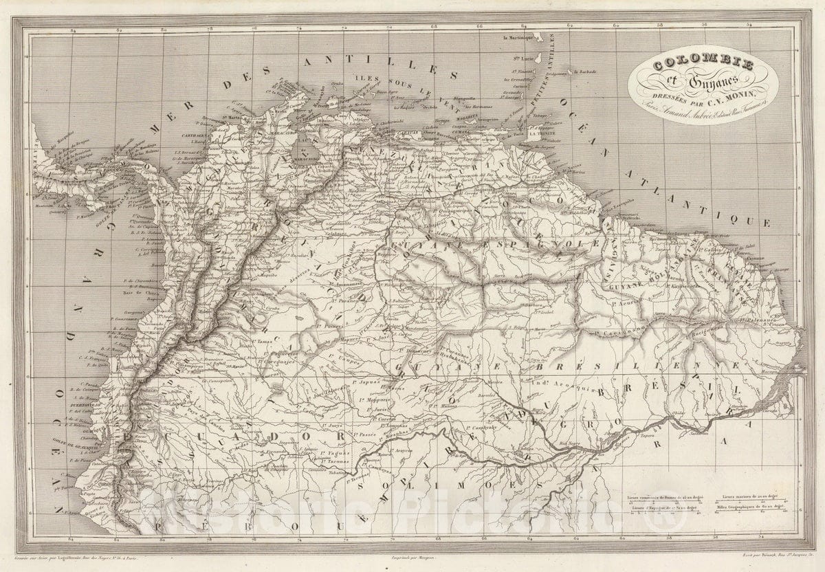 Historic Map : Colombia; Venezuela, Northern South America 1837 Colombia et Guyanes. , Vintage Wall Art