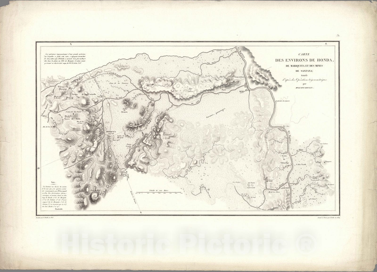 Historic Map : Tolima (Colombia) Exploration Book, XXXI. Carte des Environs de Honda, de Mariquita et des Mines de Santana. 1834 , Vintage Wall Art