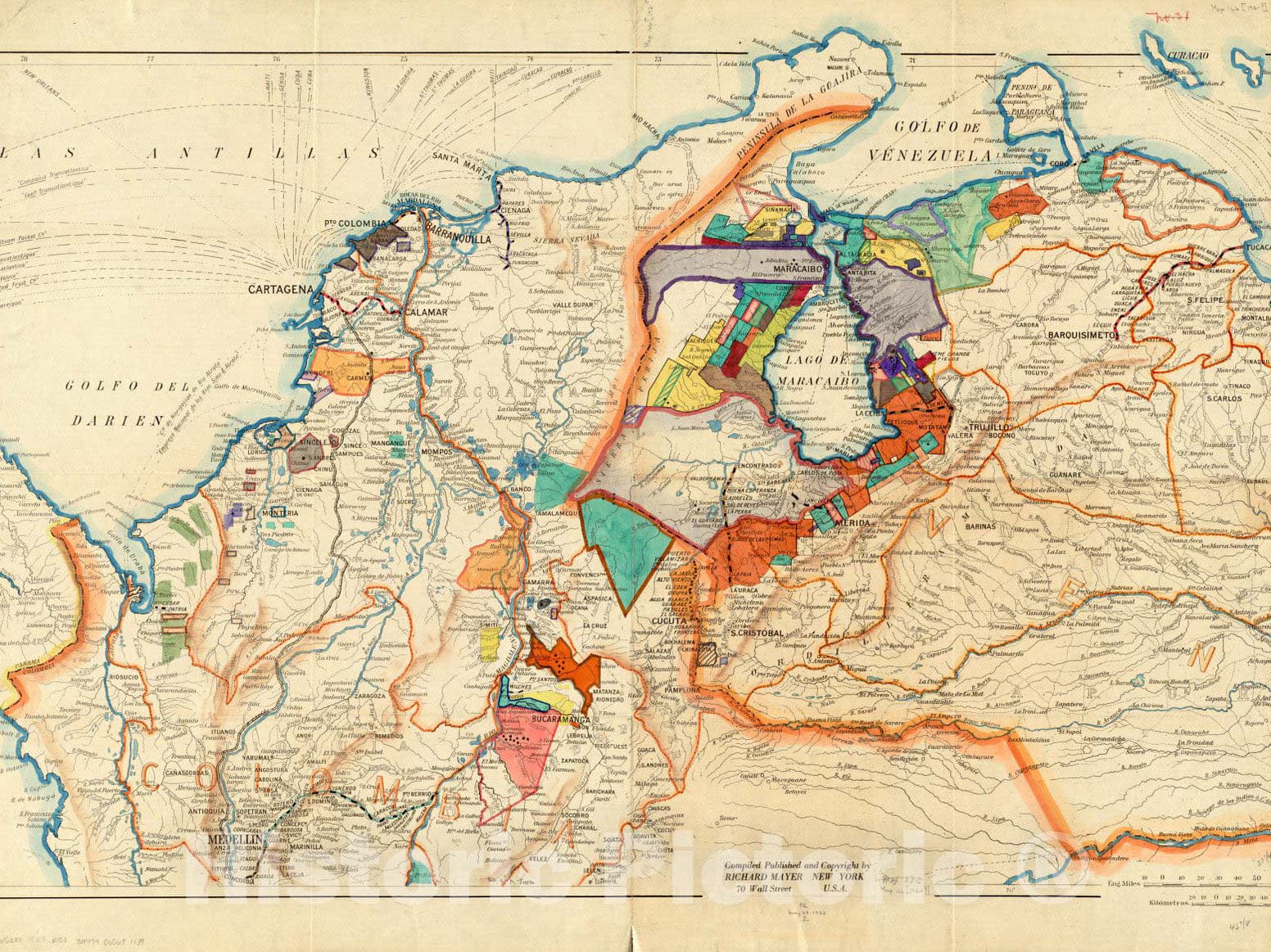 Historical Map, 1910-1923 [Map of parts of Venezuela and Colombia], Vintage Wall Art