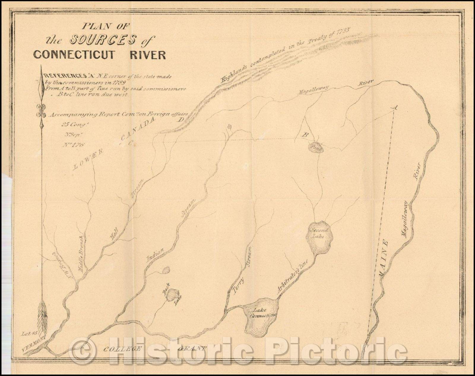 Historic Map - Indian Stream Republic Report and Map Plan of the Sources of Connecticut River, 1839, United States GPO - Vintage Wall Art