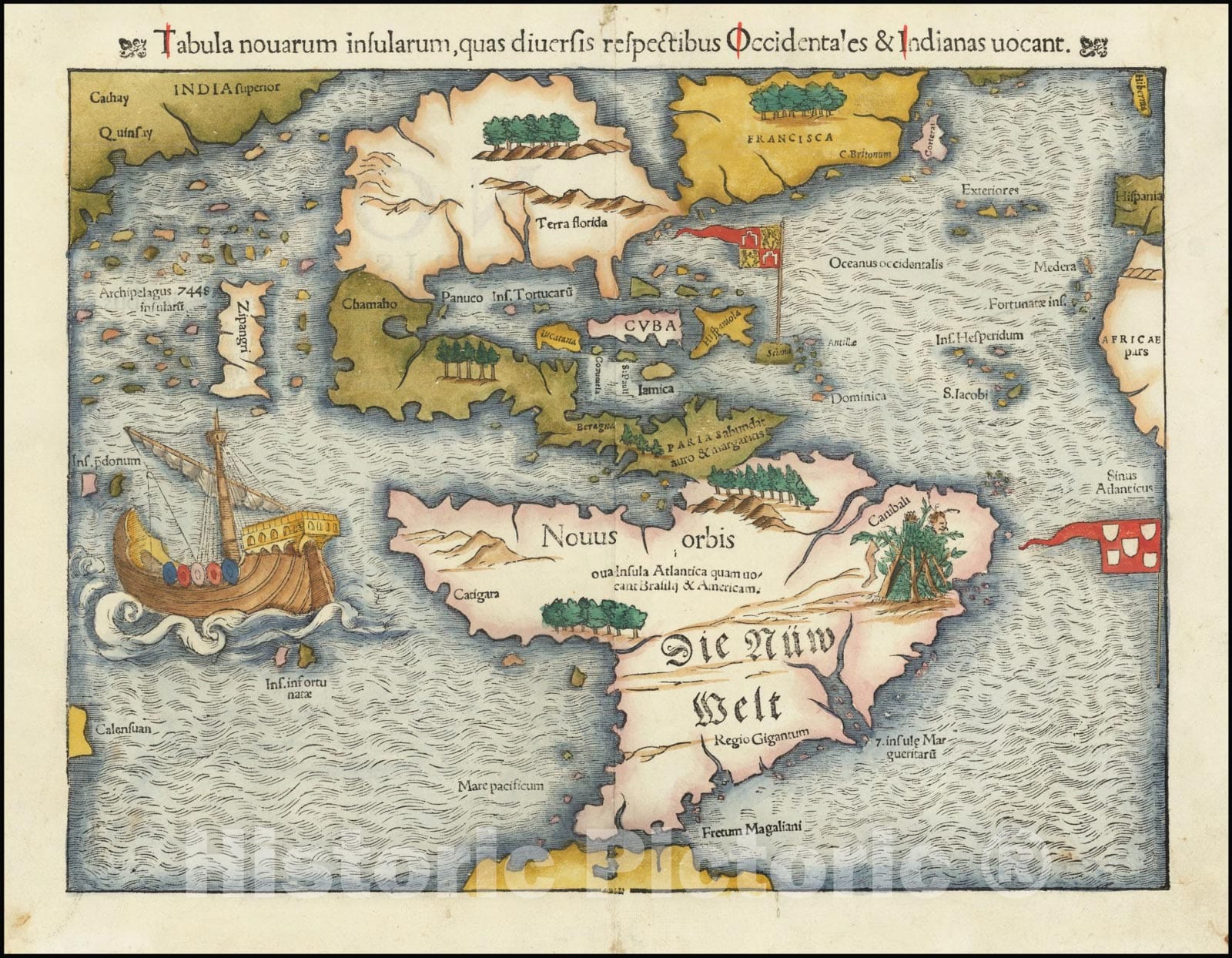 Historic Map : First Map of the continent of America] Tabula novarum insularum, quas Diversis respectibus Occidentales & Indianas uocant., 1554, Vintage Wall Art
