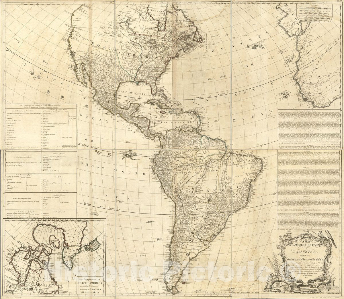 Historic 1772 Map - A map of The Whole Continent of America, Divided into North and South and West Indies with a copius Table Fully shewing The Several Possessions of Each European Prince