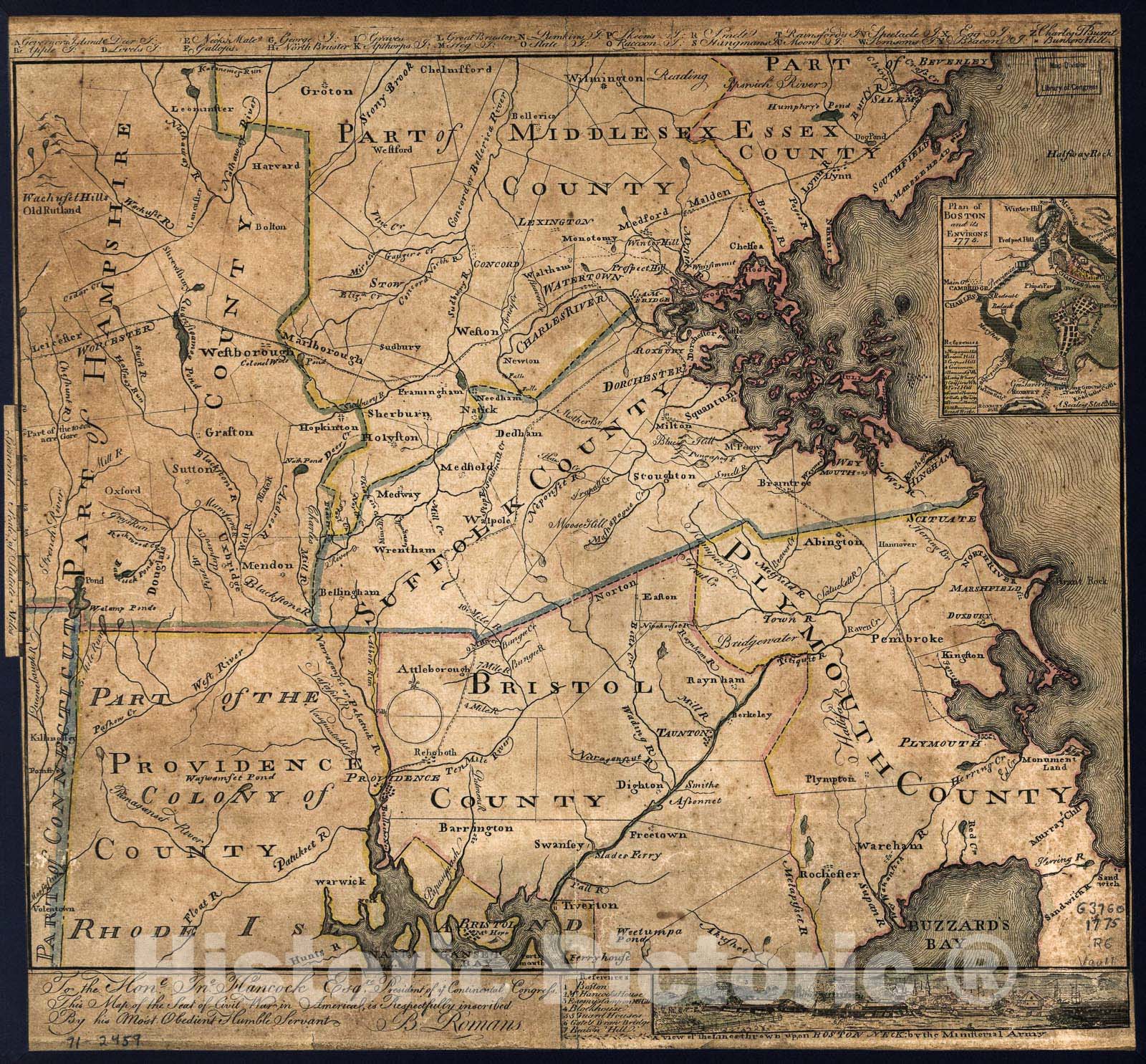 Historic 1775 Map - to The Hone. Jno. Hancock, Esqre. President of ye Continental Congress, This map of The seat of Civil war in America