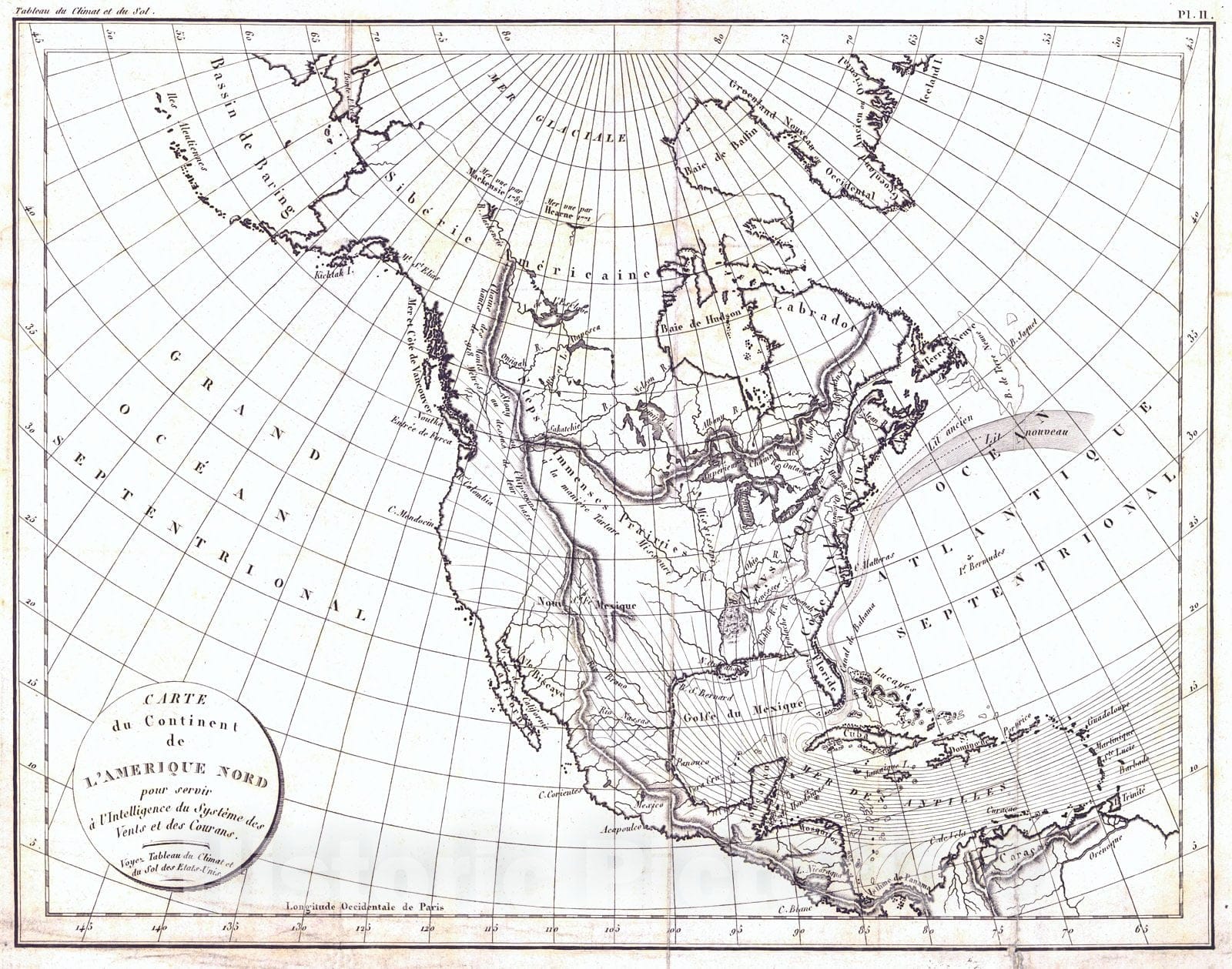 Historic Map : 1803 Carte du Continent de L'Amerique Nord : Vintage Wall Art