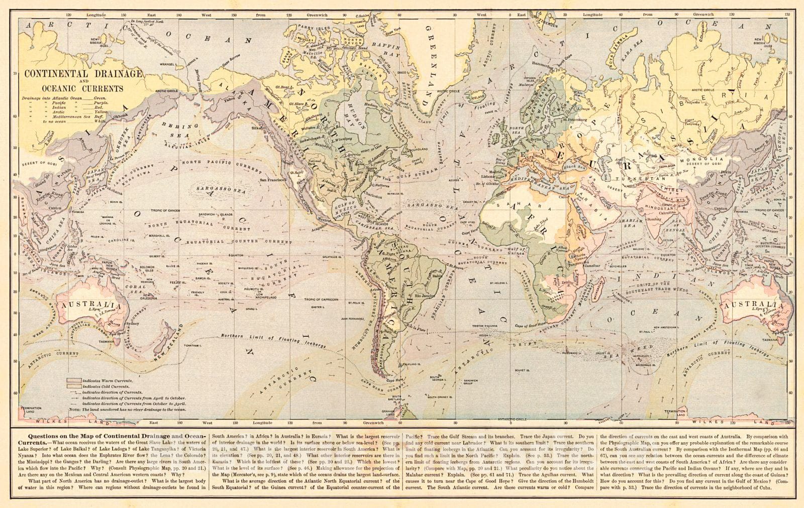Vintage Map | 1887 Continental Drainage and Oceanic Currents | Unknown