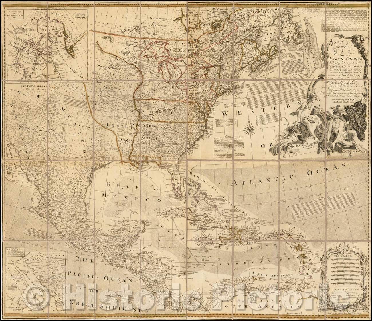Historic Map - An Accurate Map of North America, Describing and Distinguishing The British, Spanish and French Dominions on this great Continent, 1763 - Vintage Wall Art