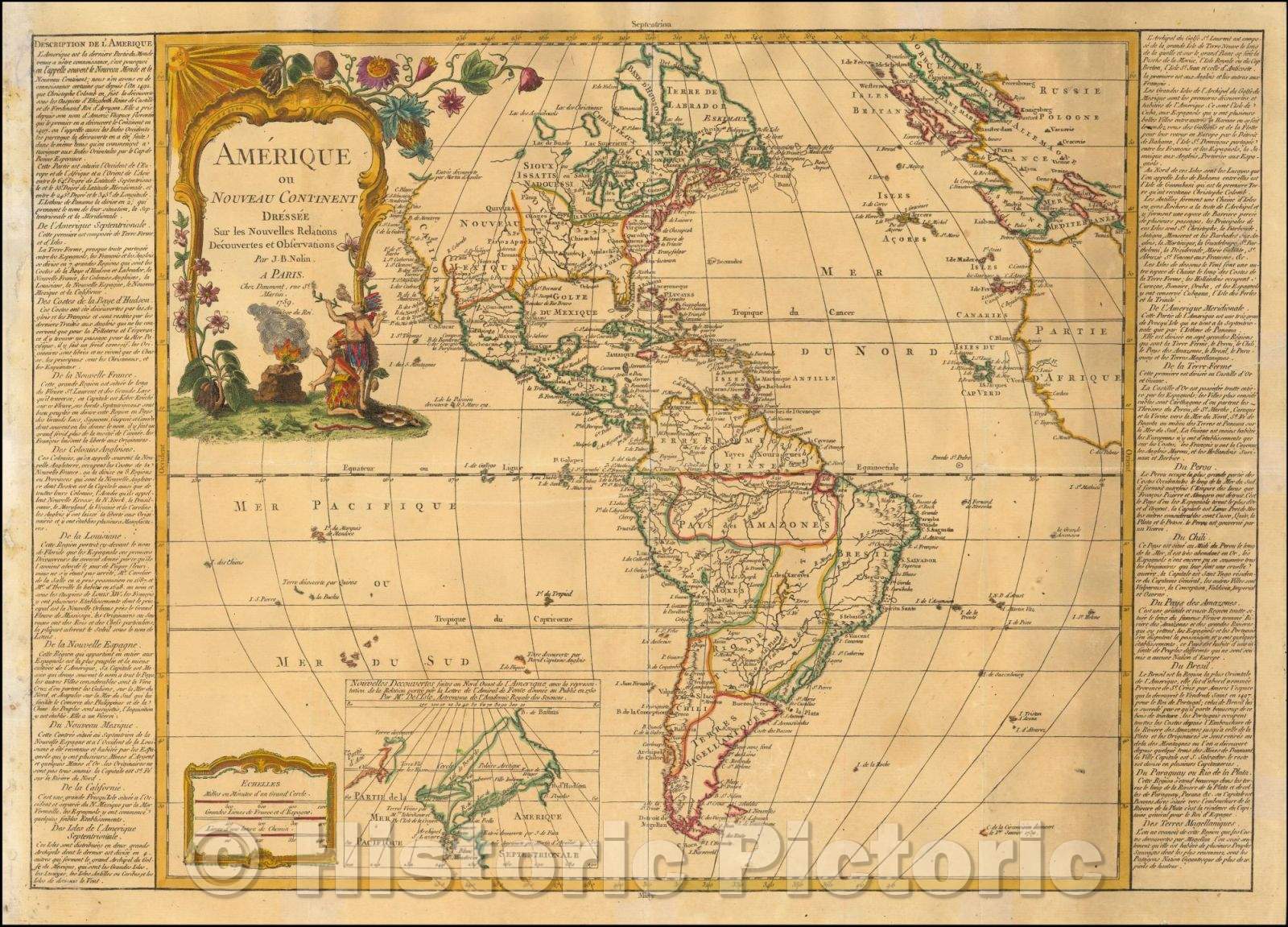 Historic Map - Amerique ou Nouveau Continent Dressee sur les Nouvelles Decouvertes et Observations/Map of America, 1759, Jean-Baptiste Nolin - Vintage Wall Art