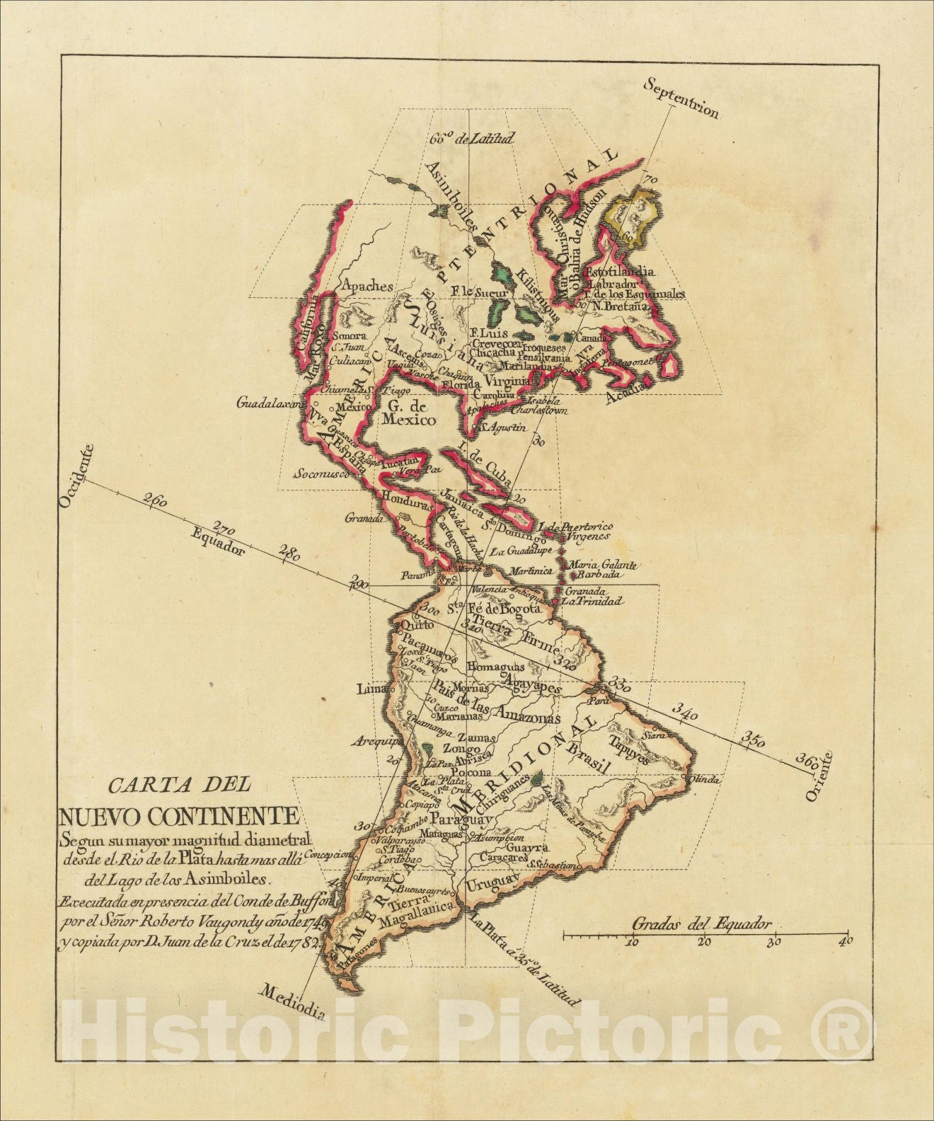 Historic Map : Carta Del Nuevo Continente Segun su mayor magnitud diametral desde el Rio de la Plata hasta mas alla del Lago de los Asimboiles, c1782, Vintage Wall Art
