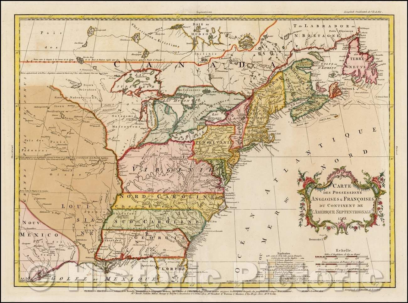 Historic Map - Carte Des Possessions Angloises & Francoises Du Continent De L'Amerique :: Possessions Angloises & Fran?ises Septentionale Amerique, 1755 v4