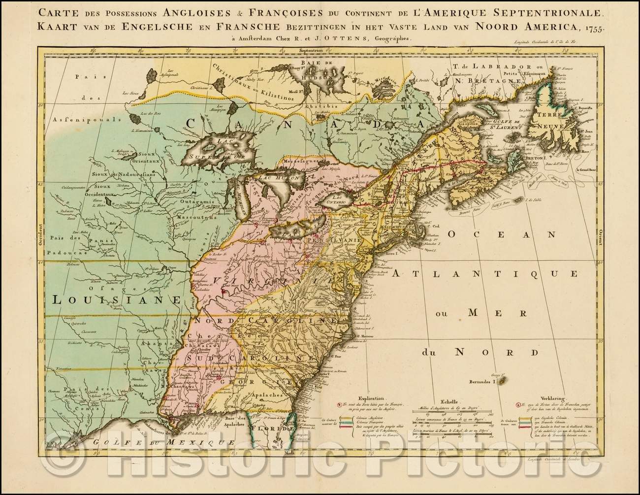Historic Map - Carte Des Possessions Angloises & Francoises Du Continent De L'Amerique :: Possessions Angloises & Fran?ises Septentionale Amerique, 1755 v3
