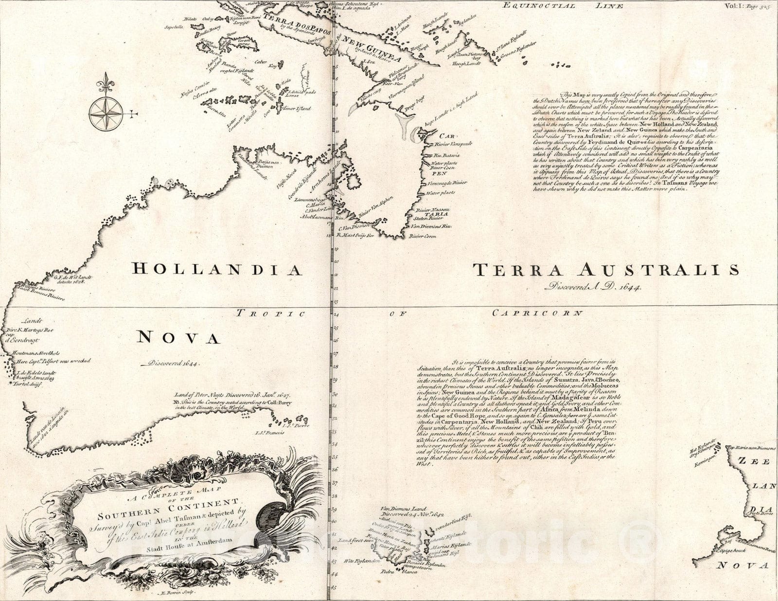 • .Historic Map : A Complete Map of the Southern Continent, 1744, Emanuel Bowen, Vintage Wall Art