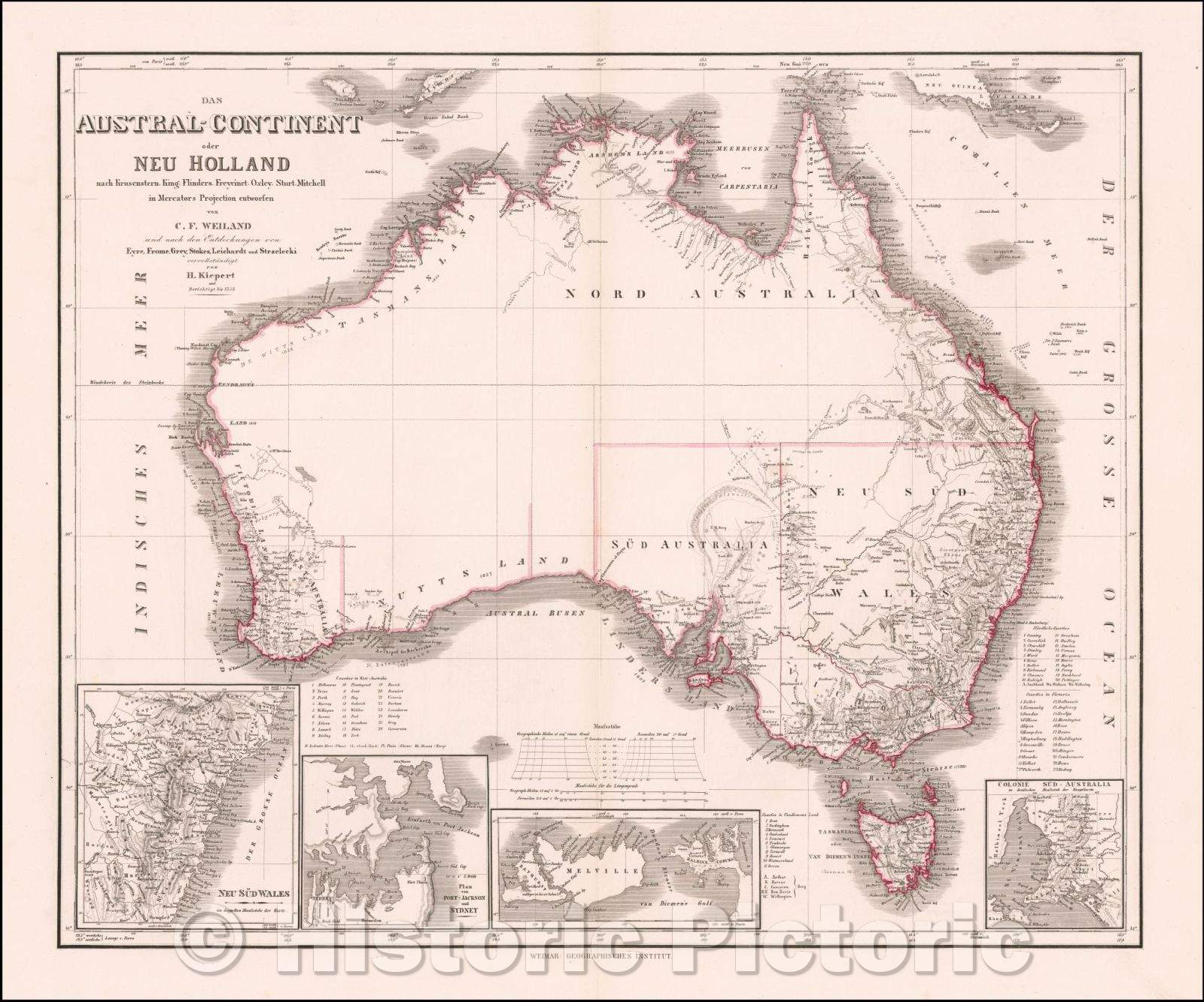 Historic Map - Das Austral-Continent oder Neu Holland nach Krusentern, King, Flinders, Freycinet, Oxey, Sturt, Mitchell in Mercator's Projection, 1858 v3