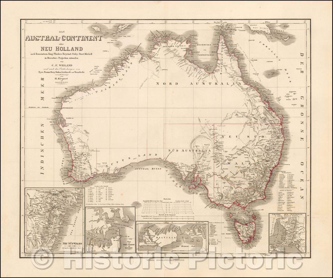 Historic Map - Das Austral-Continent oder Neu Holland nach Krusentern, King, Flinders, Freycinet, Oxey, Sturt, Mitchell in Mercator's Projection, 1858 v2