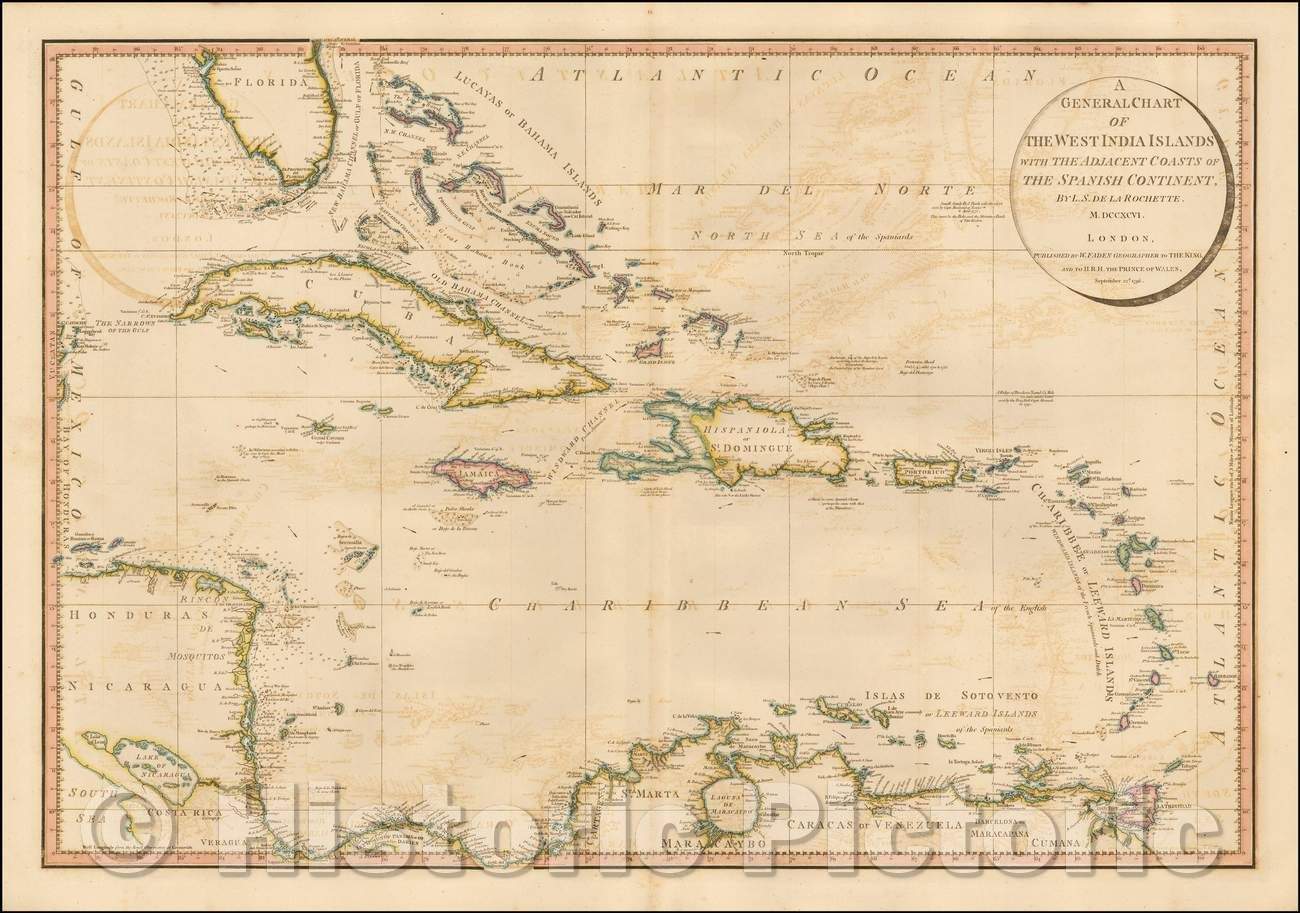 A General Chart of The West India Islands with The Adjacent Coasts of the Spanish Continent , 1796, William Faden