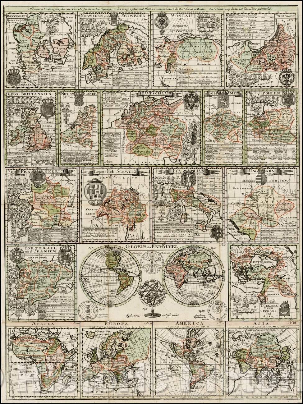Historic Map - Historisch-Geographische Charte fur die ersten Anfanger in der Geographie und Historie/Major countries and continents of the world, 1780 - Vintage Wall Art
