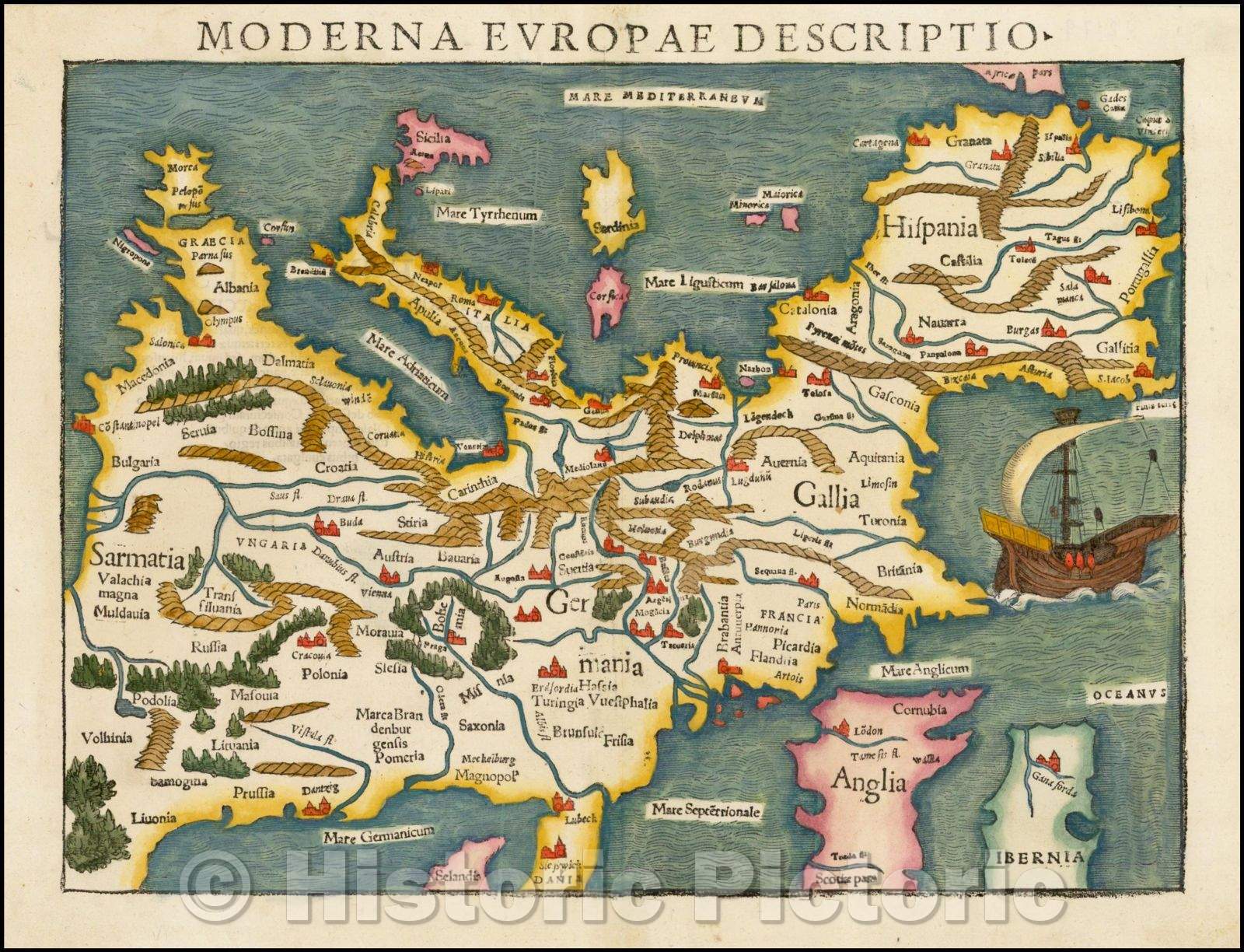 Historic Map - Moderna Europae Descriptio (First Map of the Continent of Europe!), 1550, Sebastian M?nster v3