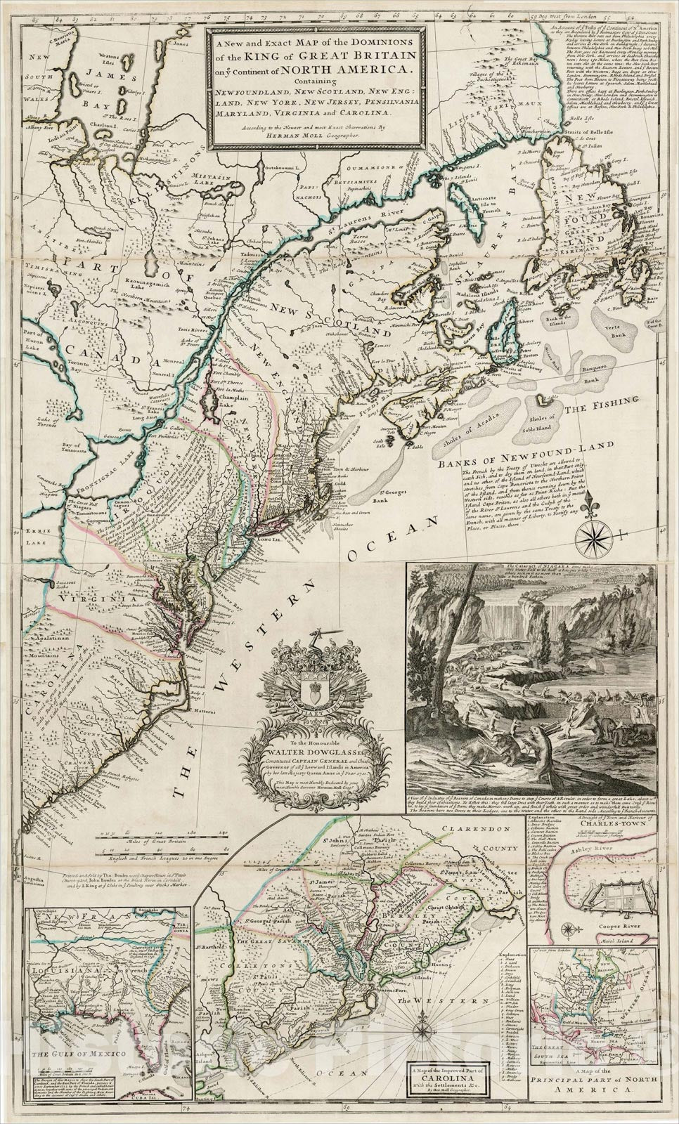 Historic Map : A New and Exact Map of the Dominions of the King of Great Britain on ye Continent of North America . . .[the Beaver Map], c1715, , Vintage Wall Art