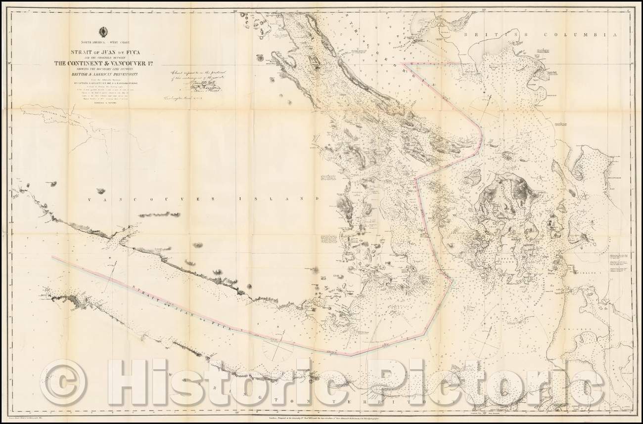 Historic Map - North America. West Coast. Strait of Juan De Fuca And The Channels Between The Continent & Vancouver Id, 1872, U.S. Hydrographical Office - Vintage Wall Art